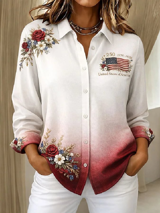 Women'S Casual American 250th Anniversary Commemorative Printed Shirt